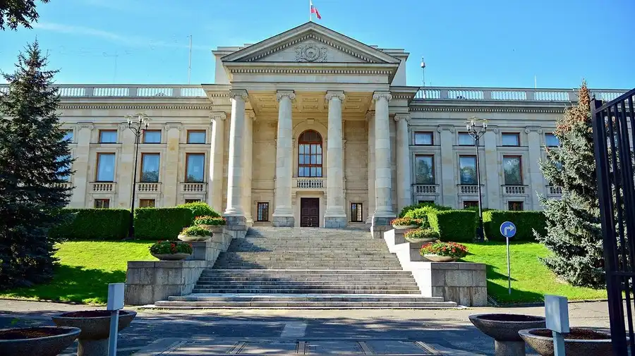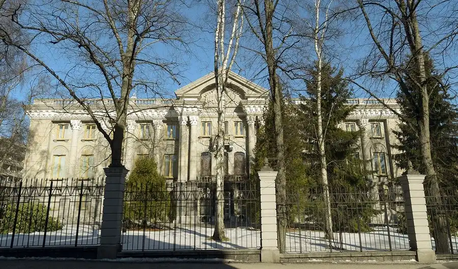 Trông không khác gì một cung điện, tòa nhà đại sứ quán Nga tại Warsaw được xây dựng năm 1955 theo thiết kế của các kiến trúc sư Liên Xô. Nằm trên một ngọn đồi nhân tạo và giữa công viên trồng hơn 8.000 cây xanh, công trình với hai cánh đối xứng và cầu thang lớn đã trở thành biểu tượng về sự hiện diện của Nga giữa thủ đô Ba Lan.